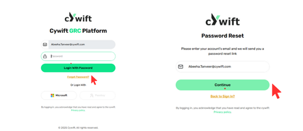 - Once reset, you can log in to Cywift using Login with Microsoft